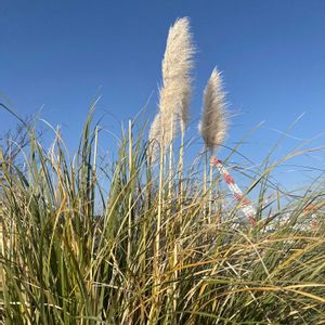 パンパスグラスはススキにも似た植物で、草丈が2〜3mにもなり、お化けススキとも呼ばれています。9〜10月ごろに花期を迎え、花びらをつけない代わりに、綿...