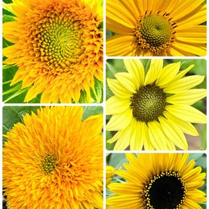 2枚目ですペコリン 庭のひまわり集合🌻🌻🌻 ひまわりは大好きです❤️ とっても元気いっぱいもらえます😄 何時も有難うございます💖 穏やかな一日となりますように🍀 お元気でお過ごしください🤗 左上下 サンゴールドの咲き始めとその後 右上 姫ひまわり 右中央 イタリアンホワイト 右下 ミラクルビーム 姫ひまわりは小さな苗からお迎え あとは種蒔きから咲きました🌻 みんな分岐性です