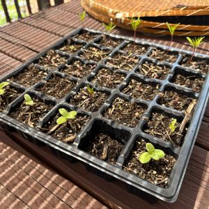 #種から育てる 4月7日に蒔いたミニひまわりフレッシュスマイルの種が発芽しました🌱✨ 1ポットに3粒ぐらいを蒔いたのでもう少し成長したら芽を1つに絞ります。 種から育てるのわくわくしますね 大きくな〜れ🌻😆