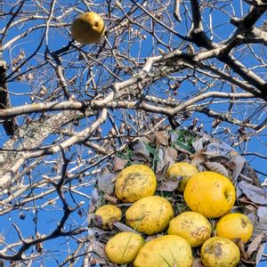 2日前の低山歩き ①カリン たくさん落ちていたので、📱しやすいように1ヶ所にまとめました。 素手で触ったので、🤚✋️に良い香りがいつまでも。 ②ドングリ、落ちずにきれいな色。シラカシと教えていただきました(葉の上半分に鋸歯) 冬の里山も楽しみがいっぱい。
