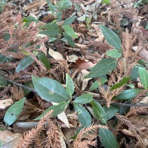 シラカシ(白樫) ブナ科コナラ属の高木 花期:4〜5月 果期:10〜11月 地元のお山でよく見るこの葉っぱ、この幼木はシラカシかな?と撮影して帰れば… 冬芽も撮影していました♪ ・葉は、狭長楕円形。先端が尖り、葉縁は浅くて鋭い鋸歯がまばらにあります。 ・鋸歯はウラジロガシほど尖らない ・葉裏は白みを帯びた淡い緑色だが ウラジロガシほど白くない (チェック済) ・シラカシの冬芽は卵形で、芽鱗が4~6枚あり、芽鱗の先端は紫褐色で、互生する葉の付け根につくらしい。 これはシラカシに間違い無さそうです。 冬芽には細い毛があるらしいですが、この写真では見えていません。 次、見つけたらルーペで確認しよう( •̀ᴗ•́ )و ̑̑ 📷 2025/1/27