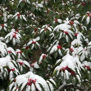神奈川でも久しぶりの雪☃️🥶 1.公園のクロガネモチ 2.ヤマボウシ 3.誘引の終わった薔薇ガラシャ