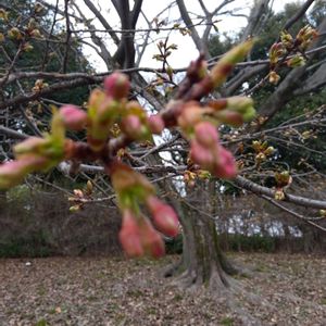#お出かけ先 ①〜③河津ざくら、まだ蕾でした🌸 ④クロガネモチ、赤い🔴実がなってました。