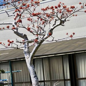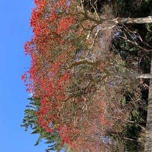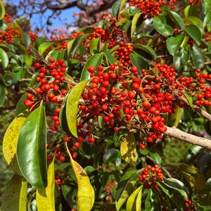 青空に映える 今朝は、青空を入れて写真を撮ってみました💕 クロガネモチの赤い実が残り、新芽も出て来たり…ブラシも花も5月には赤い花を咲かせます❤️🩷