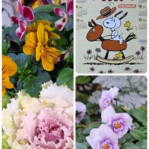 🏷️毎月2日はスヌーピーの日 🏷️カレンダーの日 に参加します🎵 ①寄せ植えのビオラとハボタンとスヌーピーのカレンダー ②~④近所の公園の、赤い実が沢山なっている木✨ クロガネモチで合っていますか? 違っていたら教えてください🙏