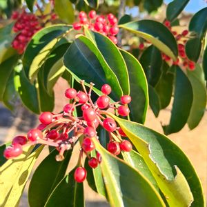 1⃣2️⃣ヤブツバキ[藪椿] (つばき、ヤマツバキ) ツバキ科、属 日本固有種で、本州~沖縄に分布 3️⃣4️⃣アリドオシ[蟻通し] (一両) アカネ科 関東地方以西~沖縄に分布 千両万両あり通しといわれ縁起物の植物 5️⃣クロガネモチ[黒鉄黐] モチノキ科 茨木県、福井県以西~沖縄に分布 苦労せずに金持ちになれるという語呂合わせから庭木などによく植えられます 🏷真っ赤な火曜日 参加させていただきます