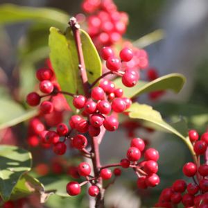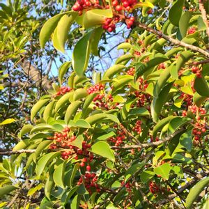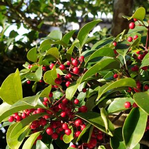 🔴クロガネモチ(黒金餅) クロガネモチ=「苦労がなく金持ち(苦労金持ち)」という語呂合わせから、商売繁盛や家内安全を願う縁起木として人気があります。 ⚫︎モチノキ科 モチノキ属 ⚫︎原産 日本 ⚫︎花期 5月〜6月 ⚫︎果期 11月〜2月
