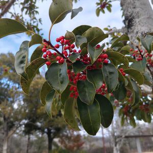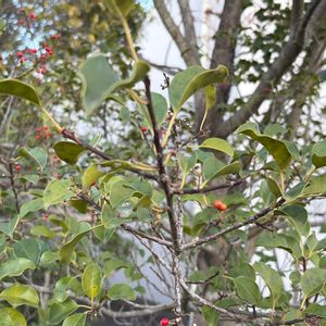 クロガネモチ 真っ赤な小さな実と光沢のある緑の葉が 岡本梅林の入り口を彩っていました♥️🌿 撮影日 : 3月1日