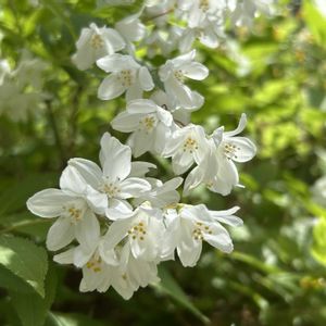 白いお花たち ①ヒメウツギ 満開です♪ ②は、1週間前の様子 ツボミの時も好きなんです ③コデマリ ふわふわ感を醸し出している蕊👍🏻 ④オステオスペルマム スプーン咲きのコ 去年より少し花数が増えたかな? ⑤アロニア 昨年植栽したもの 濃いピンクの蕊が可愛い 去年の実、居残り組