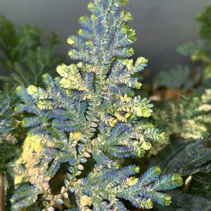 🟨セラギネラ ウィルデノウィー 斑入り🟩 マレーシアなどで暮らすシダ植物のセラギネラ・ウィルデノウィーの珍しい斑入りです。 これ青いライトを当ててるわけではないですよ。光の屈折で青く見える葉と、斑の黄色がとても鮮やかでかっこいいです。 湿度の高いケースの中で、水苔植えで育てています。育てる時は青い光を出せるライトで育てたり、湿度を枯れない程度になるべく低くするとさらに綺麗な青になるとかならないとか…… 過去にもこの株は投稿しているので、詳細はそちらをご覧ください。 おまけはコツボゴケ苔玉の経過観察です。貼り付けた部分は枯れてしまいましたが、新しく新芽が出てきて形が整いつつあります👍 アカエイと申します。ハオルチアの写真を主に、いろんな植物を投稿します☺️いいね、コメントいつもありがとうございます👍とても嬉しいです。