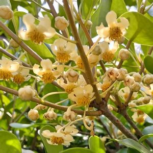 お稽古の帰り道に1本だけあるモッコクの木に花が咲いていました‼️ 高い所なのでアップは撮れませんでしたが、オレンジっぽいお花が可愛いですね❣️ ④は私が実と思って撮っていたものですが、蕾でした😅 ホント、いい加減な私💦
