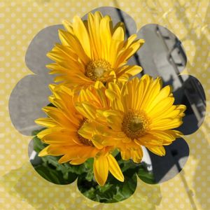 今日のお花〜ガーベラ ①お嫁ちゃんチョイスの💛玄関先に咲いてます😍 ②入学式、卒業式の生花には欠かせないお花ですね〜💐 通勤途中の公園にて♬ ③ツツジが早くも咲いてました♬ ④アオダモとツツジ ⑤アオダモのお花〜大きな木にモフモフ♬初めて見ました🤍