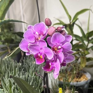 ミディ胡蝶蘭 アンスラパレルモ ラン科 原産地オランダ 元気のない値引き品でした。一個だけ咲いていた花弁の色に惹きつけられお迎えしました。🥰 花持ちがよく、花弁の色がライムグリーンに変化するといいます。育てて2年目。まだ実感してません。☺️ 名前も書かれてないので検索🔍しました。合ってますでしょうか。😌