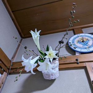 ヤシャブシの枝の流れを活かすこと。 疎と密を意識し、放射状に枝を広げすぎないように気をつけました。 テッポウユリが清楚で素敵だなと思いました✨