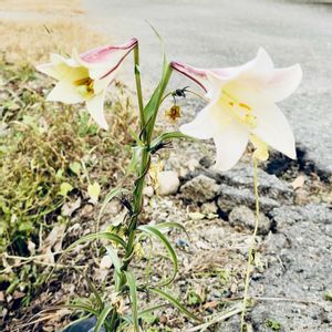今日の朝、通勤途中に見かけたテッポウユリ。