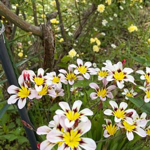 昨日の庭…スパラキシス、ロウバイ ① モッコウバラの下 少し赤みを帯びたスパラキシス ② ③ ロウバイの下スパラキシス和名・スイセンアヤメ ④ ⑤ 花後🪜花殻を取って剪定したつもりだったのに💦 木の1番下にしっかりと残っていたとは😁