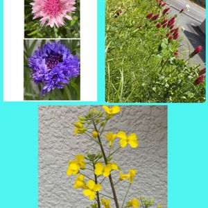 おはようございます。晴れ、18.2℃、11:20暖かい、昨日の花粉量20個少ない。八重矢車草、たくさん咲き始めました。隣の空き地にストロベリーキャンドルの余り苗植え、見事に咲いてます。のらぼう菜の花咲き8世の種採りです。紫陽花、スミダノハナビの蕾ができてました。レモン、ミカン、ポポー、ロウバイ、カボスの新葉がでました。パセリの種蒔き、日々草2世発芽、サラダみず菜、ルッコラの種採りしました。😍🥰😻😋☺️😸