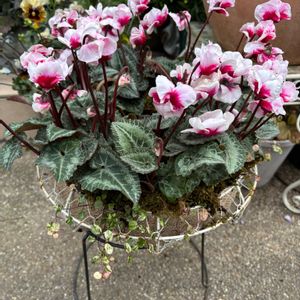 おはようございます🌿 今日のお花さん達🌸 hakusanの シクラメンアロハ お値打ち品になってて リース作りました💐 テキトーだけど😂💦 このポット、下を押すと苗が出てきて扱い易いです🪴 今日も素敵な1日を お過ごし下さい🍀