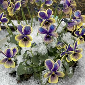 神戸 べっぴんさん ビオラ 今日は朝起きたら雪 ⛄️❅*॰ॱ❄️。 玄関先に置いてあるビオラにも雪が積もっていましたෆ.*・゚ この神戸 べっぴんさんは2.5寸くらいのしっかりとした苗で売っていて色合いも気に入って買ったもの♡ 春にはもっとボリュームが出て綺麗に咲いてくれるのが今から楽しみです(*ˊ˘ˋ*)♪