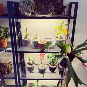 ビカクシダ・エリシーの一つが成長点がやたら増えたので選抜して分割。別の一つは落下させて首折れしたので、水苔を巻いて見守りです。