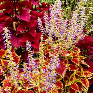 栄養系コリウス スクスク育って大きくなりました 小さな紫のお花もたくさん咲いています 来年もリピートしたいリストにいれました⋆⸜♡⸝⋆ そろそろ寒さに弱い植物の住まいを整えなくては ウンベラータの葉をモリモリ食べていたのはシャクトリムシでした>ᴗ<