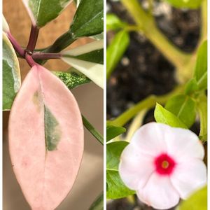 ホヤカルノーサのピンクが綺麗です💗 ピンクの葉っぱが少ないので嬉しいな☺️ ニチニチソウのお花が終わったと思っていたら小さく1輪咲いていました。最後かな。