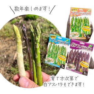 根を畑に埋めて育てるアスパラガスはいかがでしょうか!! 植えれば数年収穫できるアイテムです♪ 手軽にフレッシュな野菜を収穫して食べましょう✨ お近くの園芸店やホームセンターで探してみてください😊 ■販売時期:1月下旬~ ※Lサイズは翌年4月から収穫、2Lサイズは(植えた年の)8月中旬から収穫できます。