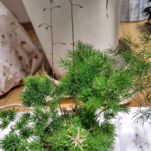 アスパラガス達が突然新芽を2本づつ出してきました😲。 何かあったのかな?🤔 このコ達は夏🎆はベランダに居ますが、冬☃️は寒さを避ける為にお部屋に居ます。 今は昼間は部屋に差し込む日を浴びています。 最近、アスパラガスさんがらみで嬉しい事がありました😃。 うちには2種類のアスパラガスが居ますが、フォローアーさんのおかげで種類が分かりました。😃 1-2pic目がアスパラガス・マコワニーで、3-4pic目はアスパラガス・プルモーサス・ナナスです。