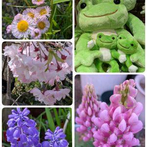 🏷️カエル仲間 🏷️キャラクターピクルス 🏷️けろけろけろっぴ ゆる〜く参加 させてね😉💕 ①ヒメジオン シダレザクラ ムスカリ ルピナス ②グリーンアスパラガス (右上) チューリップ🌷❤️ バレリーナ (左下) チューリップ🌷🩷 ハウステンボス タンポポ 土筆(つくし) ③チューリップ🌷❤️ バレリーナ ④チューリップ🌷 ハウステンボス ⑤シバザクラ ③④⑤は ①のルピナス ②のグリーンアスパラガス は我が家のお花と野菜 🏷️コラージュ仲間達 🏷️2026年桜さくら サクラリレー