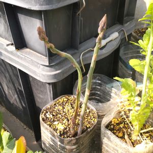 多分、3年目のアスパラ やっぱ、ペットボトル栽培では 限界だわな もっと大きな容器が必要だ!