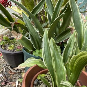 🏷️今日のお花 オモト 万年青 最初のはご近所散歩で 葉が美しい 後は我が家のお花 葉が汚すぎ お水遣りができていない まだ別の万年青の鉢もあります😥