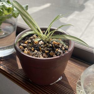 今日も寒いですがお日様がでていい天気です🌞 先日、前から購入しようと思っていたオリヅルランが祖父のお庭に植っていたので一株頂戴しました🤲🏻 お家にあったこの植木鉢に植えてみました✨ この葉の色が可愛いです🌿 このまま大きくなって増えたらまた株分けして何箇所かに置きたいと思っています💡