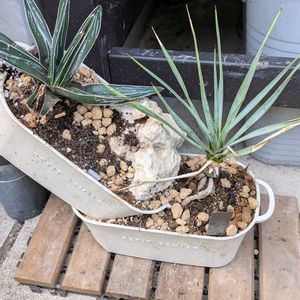 アガベとユッカ、ボーカルネアグラキリスを無理やり寄せ植えしました。