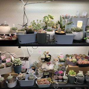 多肉棚がそろそろいっぱいになってきたので昨日の夜から百均の鉢に2〜3個くらいに詰めて植え替えとかしてたんだけど、ちょっと飽きてきたので気分転換に気になってた園芸店を見に行ったら、またまた購入してきちゃった💦