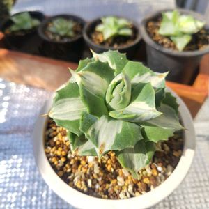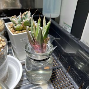 同じ管理してて、ピクとも発根の兆しさえ無い株、、。 1月も19日くらいに手元に届いてはや一カ月〜。アガベのアルアルですね。 生える子は3日で根が出るのに、一回ぐずると中々にヘソを曲げてくれます。 ジュレなきゃ良いけど、、。 この子は笹の雪の白中斑です。