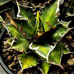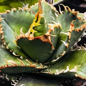 こんにちは♪ 久しぶりの投稿です。 2月なのに気候が穏やかで過ごしや すくて良いですねー✋ Agave titanota 悪魔くん (別名:BAKEMONO・スパチタ) 悪魔くんは購入先の違う数鉢を育てているのですがその中の一つ。 徐々に悪魔くんらしい雰囲気になってきたかな🙏 型の良さと鋸歯のうねりが魅力的な個体に育ってくれたら嬉しいんですけど(゚∀゚)♪