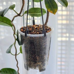 「ウォータースペース ゼロ」 植え替えの深さの感覚を見誤ることが多いです…🥺(①) ずっとゆっくりと一枚ずつ葉が黄色くなってぽろりと取れるというのを繰り返している マダガスカル・ジャスミン 春だし様子を見てみようと3.5号くらいの鉢から取り出してみた。 案の定根鉢パンパン丸でした。(②) 土を調べると外で育ててる方が多いからか、腐葉土って出てくるけど、無機質寄りがいいしふわふわタイプ観葉植物の土でいいかなぁと戸棚を見ると在庫が無い…🥺 今ある資材でなんとかしようと、赤玉4、観葉多肉の土3、パーライト2、くん炭1(気休め) を混ぜてみた。(③) そしてちょうどいい4号鉢がない…使い古しが二つ、どっちも吊るとかわいくなさそうな鉢だ…(④) 深さがある透明のほうにした。 鉢底石多めがいいということだったのでそうしたらウォータースペースがなくなりました。 どっかの社長がウォータースペースは人間の都合だから無くても大丈夫って言ってたからそのままミッチミチで作業終了とします…。 元気になぁれ😅