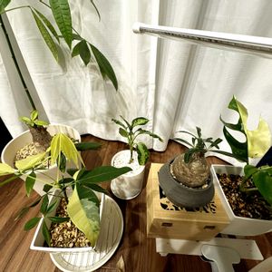 パキラは斑のない枝をカットし 脇芽からも斑入りの枝がゆっくりながら成長中🌱✨️ 水やりをすっかり失念した時期に2株ご昇天させてしまったので、今年度は気をつけます💦