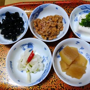 今朝の朝食🍜🥢 今宵は節分👹 アイコンは赤鬼 高齢の我は豆まきは省略 豆尽くしの朝食(笑) 黒豆 納豆 冷奴 大根煮物 漬物