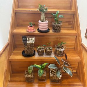 最近の観葉植物たち🪴 新たにアデニウム2つとスパティフィラムが仲間入りしました(*^^*) あとガジュマル深植えの強剪定しました!根っこ太くなーれ!!!!!