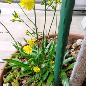 アボカド🥑の根元に着地して 元気 元気 雑草だが可愛いから除去しない オニタビラコ