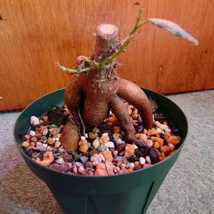 おはようございます。 ガジュマル3兄弟のうち、断トツに葉っぱが小さかったやつ、案の定グレて葉を落としました。 一応落葉後の細い茎は緑なので、他と同じく継続管理します。選ぶ際に塊根部の形だけで選んだ子だからね。春に動いてくれればいいけどね。