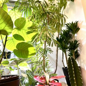 モーニングジャングル😊今日も1日良い日でありますように😊お気に入り😊 🪴パキラ 🪴ドラセナパラオ🇵🇼 🪴フィカスウンベラータ 🪴フィカスペティオラリス