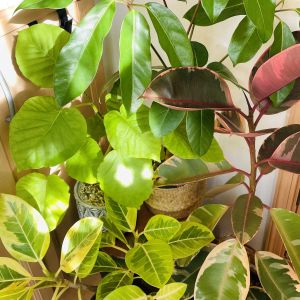 今日はいい天気になりそうです😊ゴムの木チームも気持ち良さそうです😊 😊フィカスウンベラータ 😊フィカスルビキノーサ 😊フィカスベンガレンシス 😊フィカスアフリカンプリンス