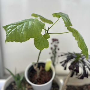 💚ウンベラータ💚 先日、用があって帰省した息子が抱えて持ってきたウンベラータ🌱です。 以前、知り合いから一節✂️チョッキンして『育ててみな~!!』でビニール袋でもらったものだとか ꉂ🤣𐤔 育てて4年目 30センチまで育っていました🥰 持ってきたと言うことは、貰っていいんだよね🤗ありがとう 2枚目は銀座三越の休憩スペースにあったウンベラータです。