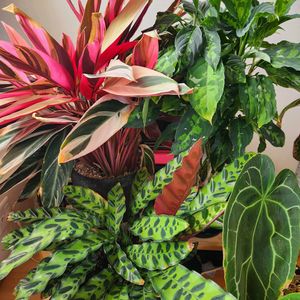 湿気が大好きなアンスリウムを1箇所にまとめました😊加湿器で気持ち良さそうです〜😊