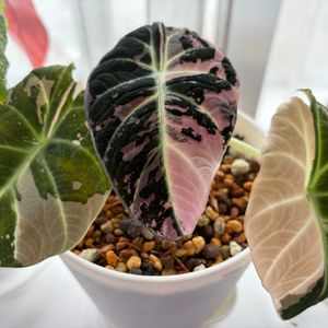 先日お家に届いたアロカシアロンギロバ・スカルプラム・ゴールデンボーンです。 3つとも新芽展開中です🌱🌱🌱 まだまだ小さいけど既に葉っぱがカッコイイ😃 これからが楽しみです。