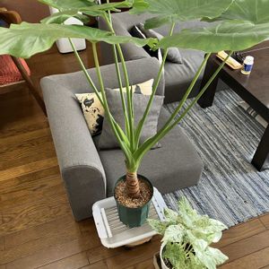 扇型の大きな葉っぱと、まるでサトイモのような実でできた幹が特徴の「クワズイモ」。 不思議でユニークな見た目で、お部屋のインテリアにもぴったりな観葉植物...