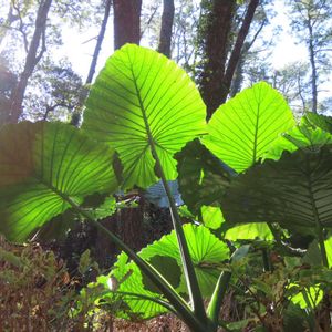 🏷️8日は葉っぱの発表会 巨大な葉っぱシリーズ〜ⅲ 赤松の林の〈クワズイモ〉の葉っぱ🍀 2026.2.3フラワーパーク