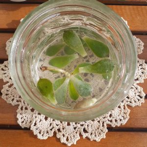 本日2回目ですすいません🙏 ①多肉復活祭り✨✨💚 しわしわになった多肉をどうしたらよいかわからずタニラーさんのフォローワーさんが親切に教えてくださいました復活したみたいです✨ ありがとうございます🍀😌🍀 ②11月から育て始めたポトス 大きくなるのかな?🤔 ③アスパラの葉っぱ?100円でかわいくて買いましたがラベルがなくなんにもわからず😅 ④一目惚れ✨😍✨で買ってしまったプチドルチェビュアライト?葉っぱがキラキラで一目惚れ✨😍✨で買ってしまいました✨トラディスカンチア? これ大きくなるのでしょうか?🤔